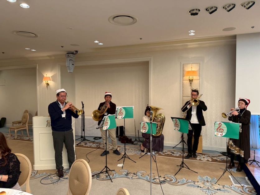 「先日は吹奏楽部OBOGとして、忘年会にて演奏させていただきました。初めての参加にも関わらず、大変暖かく迎えていただき、とても楽しいひと時となりました。また、皆さま大変芸達者で、歌やクイズの時間などもあり、さすが高津生…!と驚くばかりでした。