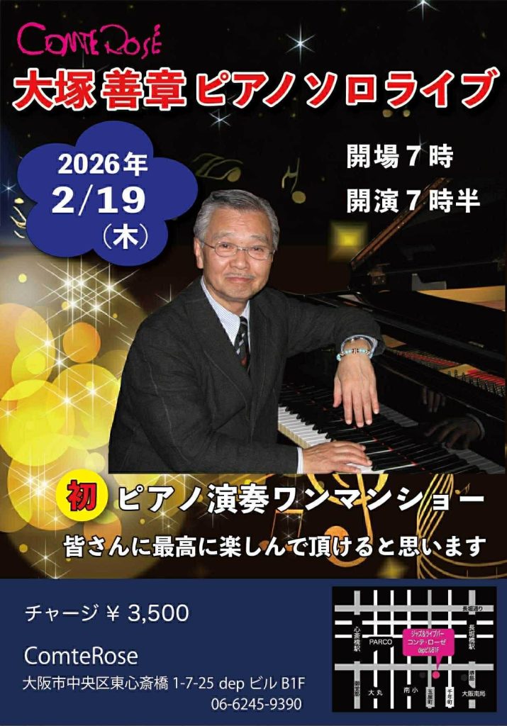 2026年2月19日(木)高校4期・大塚善章さんが「初ピアノ演奏ワンマンショー」を開催されます。